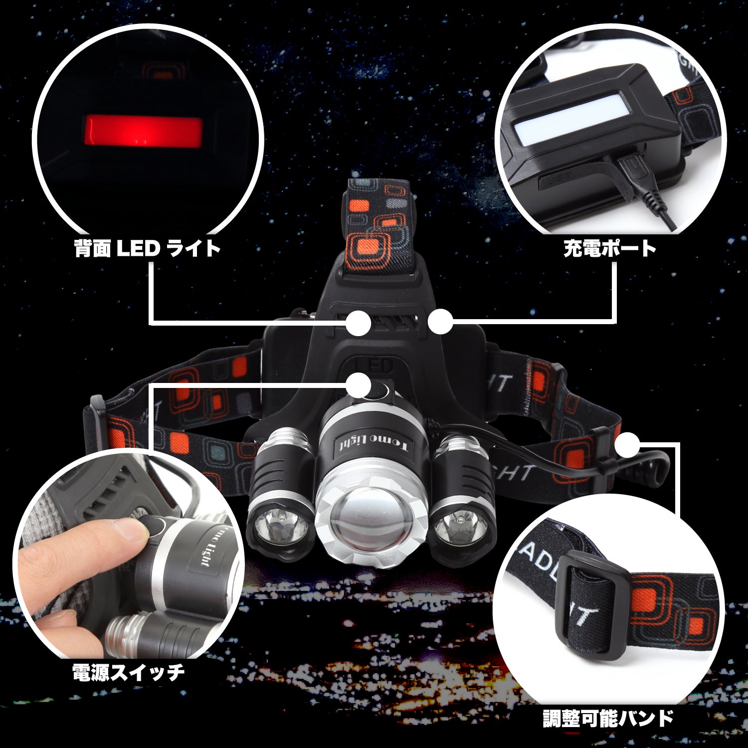 こちらの3眼のヘッドライトは使用時間は