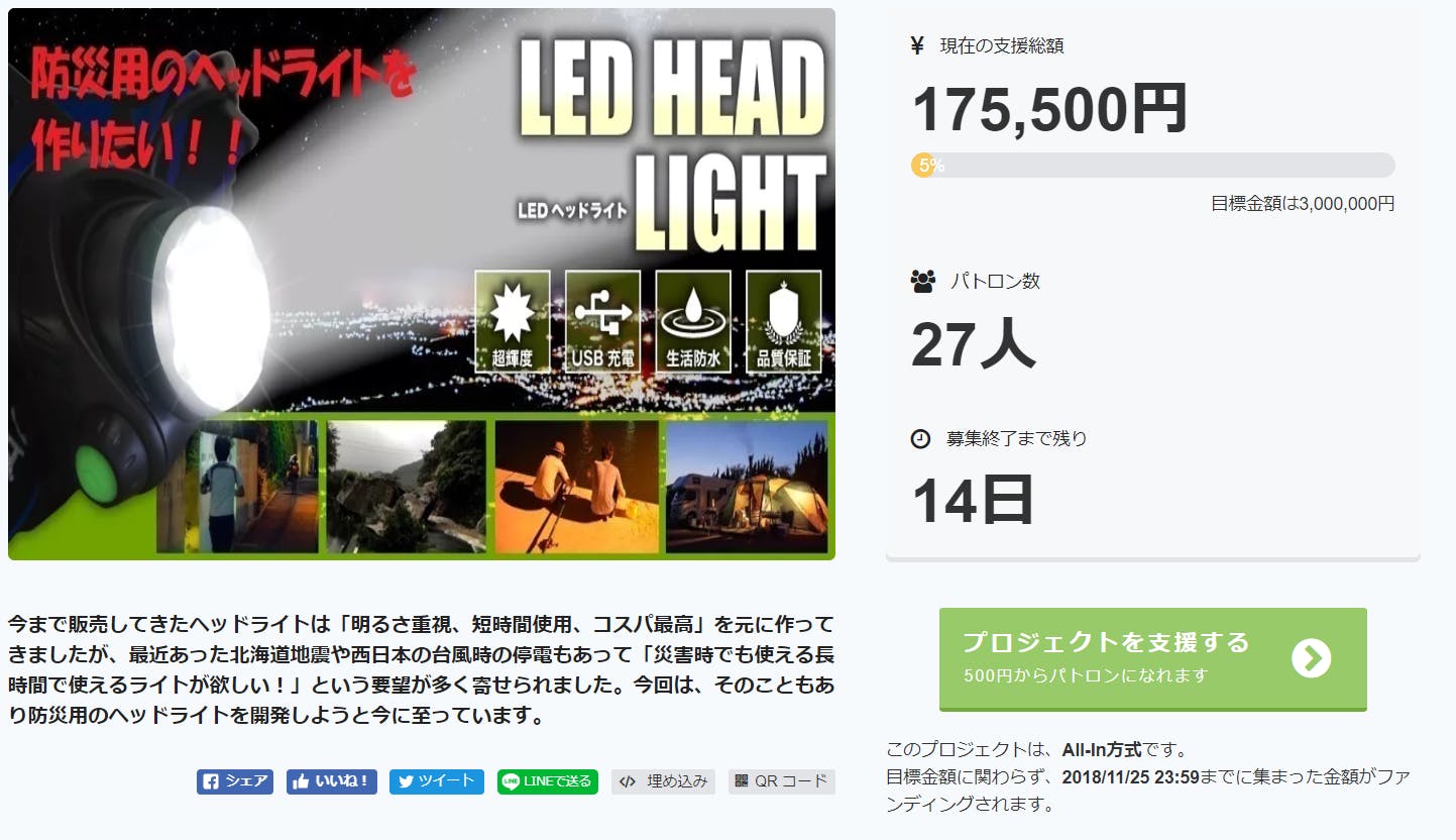 目標金額は3,000,000円