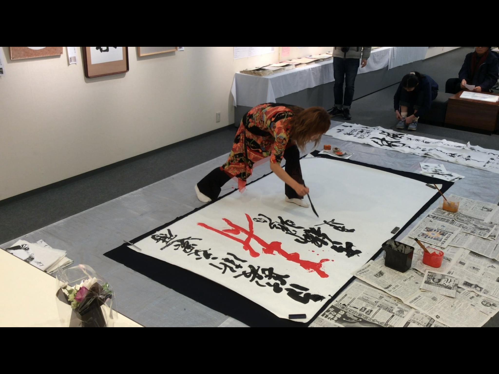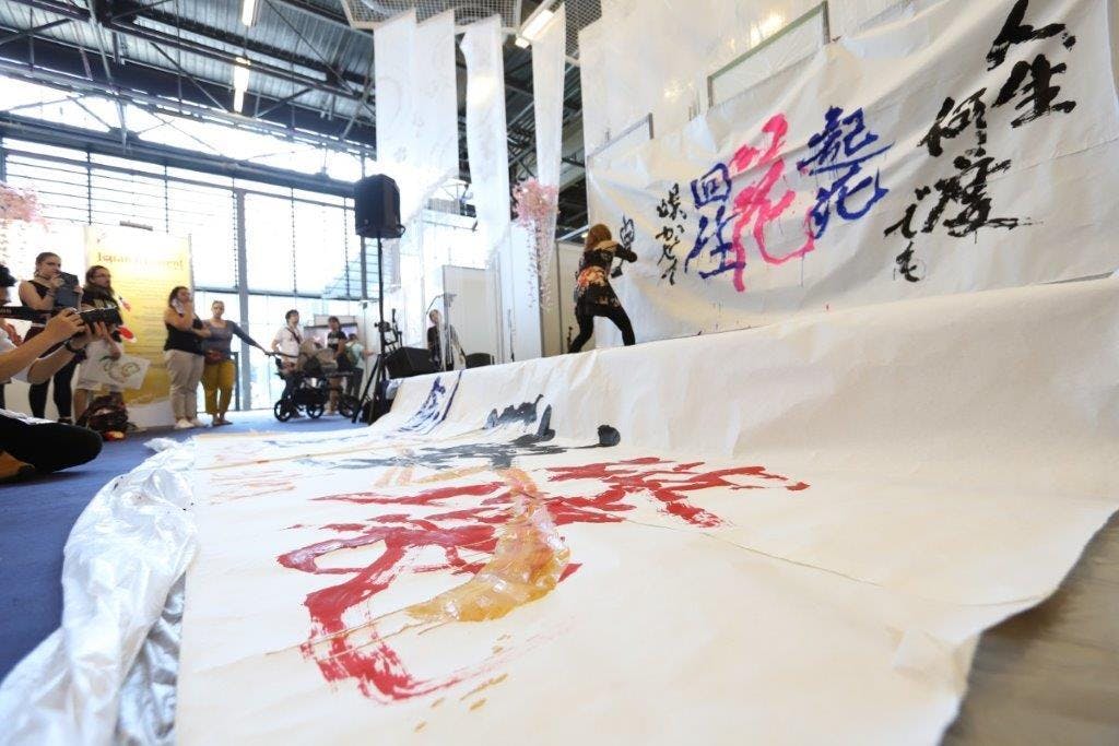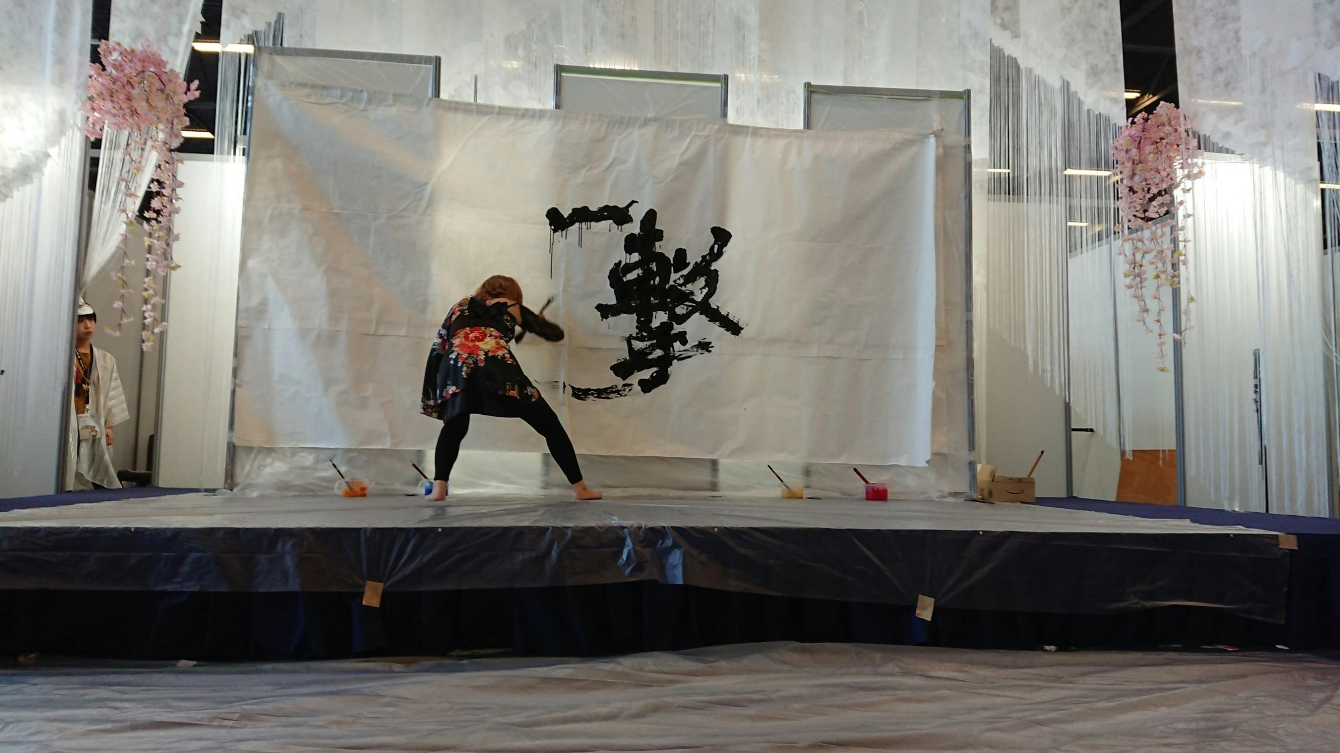 社中展会場でのパフォーマンス。(書道吟)