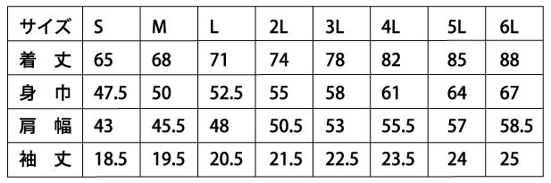 Tシャツは綿100%、6.2ozのかなりしっかりとした生地を使用しております。サイズは表の通りになりますのでご確認ください
