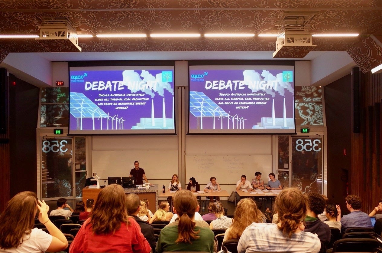オーストラリアの大学で行われたDEBATE NIGHTというイベント。お題は「オーストラリアは今すぐ石炭の採掘を止め、再生可能エネルギーへ集中すべきか?」でした。