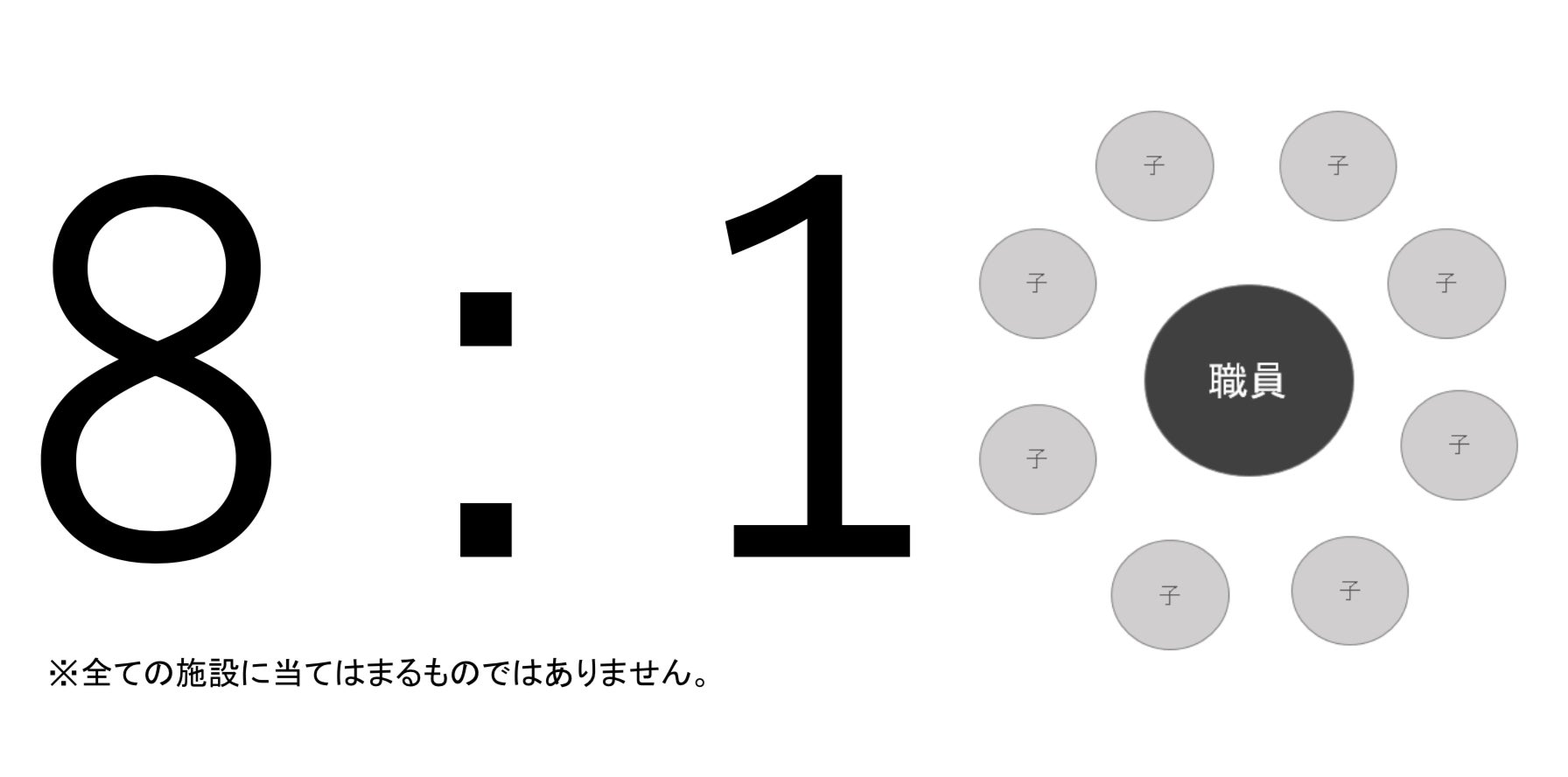 人財確保が比較的できている施設ですら、時間帯によっては職員1人で8名の子どもを見ているところも多く、20名程の子どもを1人で見ている施設も少なくありません。
