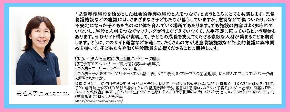認定NPO法人児童虐待防止全国ネットワーク理事の高祖常子(こうそときこ)さんから応援メッセージをいただきました。
