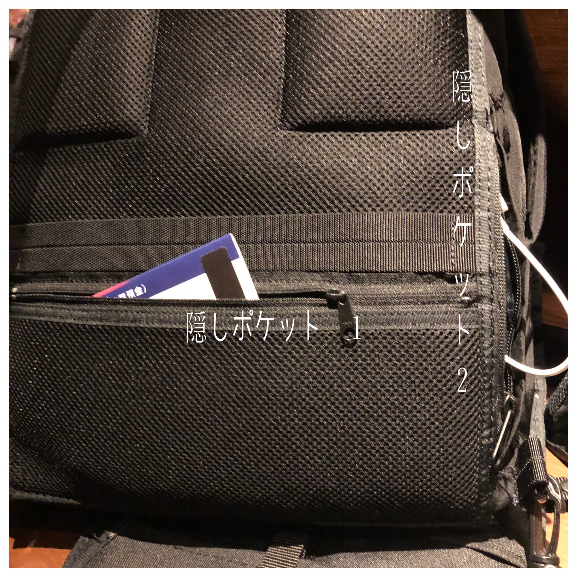 隠しポケット3には、スマートフォン、財布、定期入れなど。