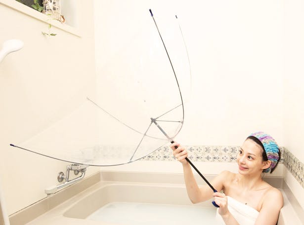 ただし、内側が狭かったり空気が漏れたり傘を持ち続けながらお風呂に入る、不便さがありました。