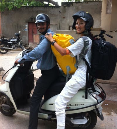 4人乗りもありのインドなのでこの大荷物でも“No problem!!!"ろ言われます。