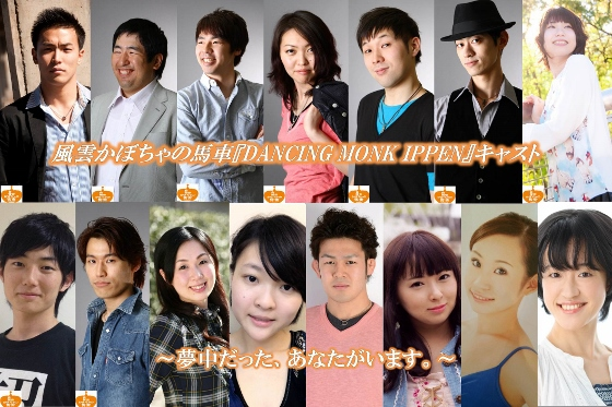 上段左から 菅本生、眞野基範、南雲秋助、亜耶野、高橋範行、須佐光昭、宮内咲希子 下段左から 村上亮、西村隆主(以上、風雲かぼちゃの馬車)、秋山静、佐藤ららる、重光、庄野有紀、鈴木あずさ、村井彩子 以上、15名のキャストで上演致します! ニューヨーク公演を大成功に収められるようカンパニー一同、全力を尽くして参ります! 何卒よろしくお願い申し上げます。
