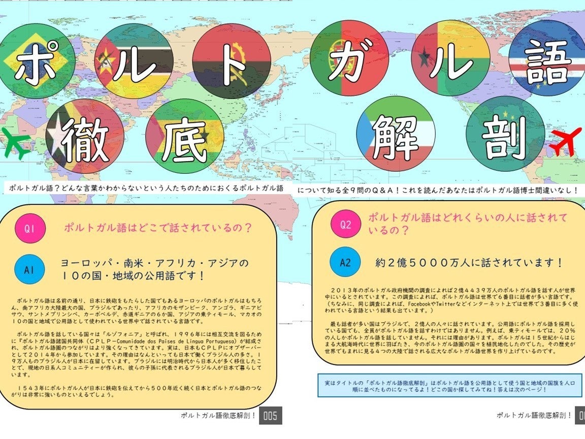 新入生、もしくは外国語を専攻することを希望する高校生などに配布するフリーペーパーを作成し、「ポルトガル語を学ぶ」ことを身近に感じられる環境を整えることを目指します!