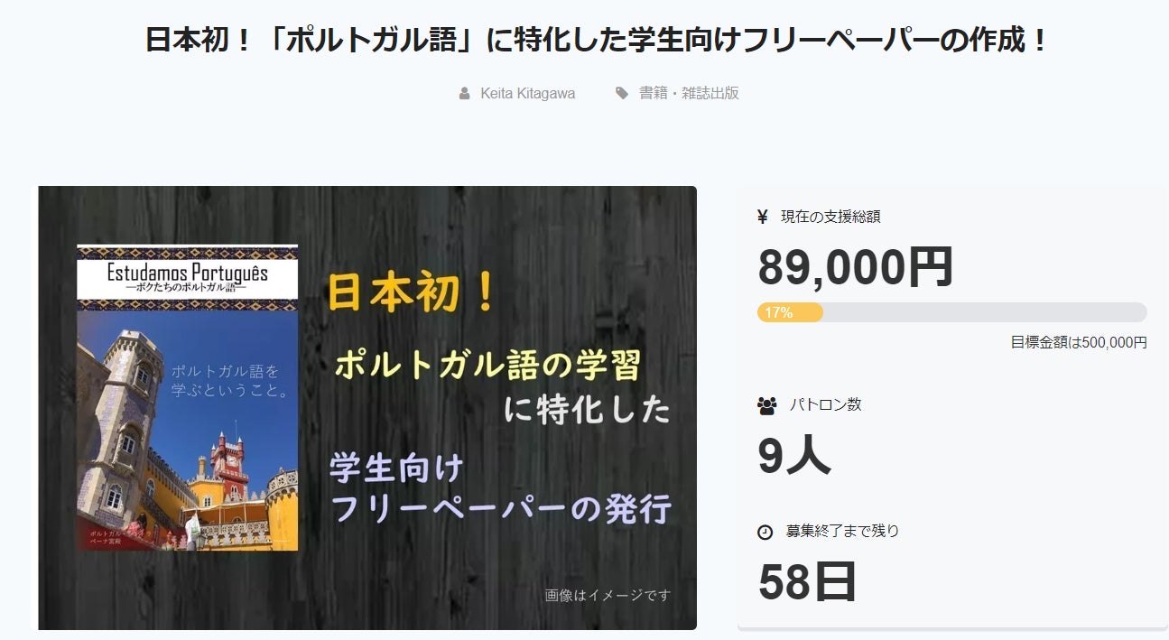 本日までに、9名の方に89,000円のご支援をいただきました。この場をお借りして、厚く御礼申し上げます。ありがとうございました。
