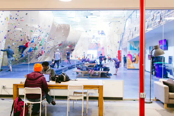 ※フィットネスジムに働くことのできるオフィス空間を併設している米サンフランシスコの事例です:http://jp.wsj.com/…/SB1261684526805603405250458215834047147…