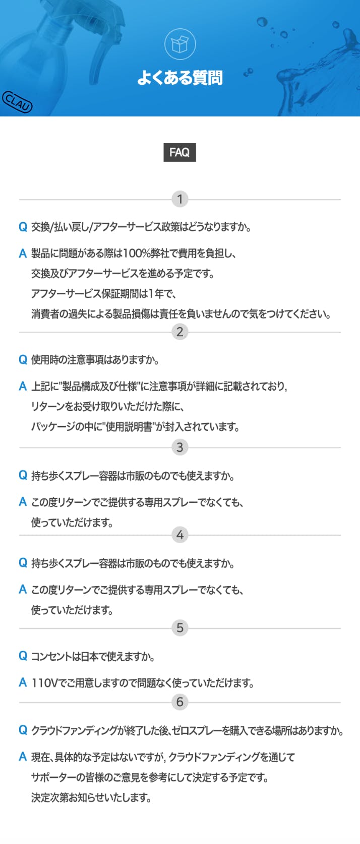 2019/01/31 12:57皆様のご関心と愛により、ゼロスプレーが866%という驚くべき成績と共に成功的にクラウドファンディングを終えることができました。ご声援の方誠にありがとうございます。韓国は来週から新年の行事(ソルナル)があ理、1週間ほどすべての業務が中断されます。最大限早くゼロスプレーを生産及び発送準備をし、2月中旬頃正確な配送日のお知らせをさせていただきます。ゼロスプレーと共に綺麗で幸せな新年になることを心から祈ります。ありがとうございます。 もっと見る