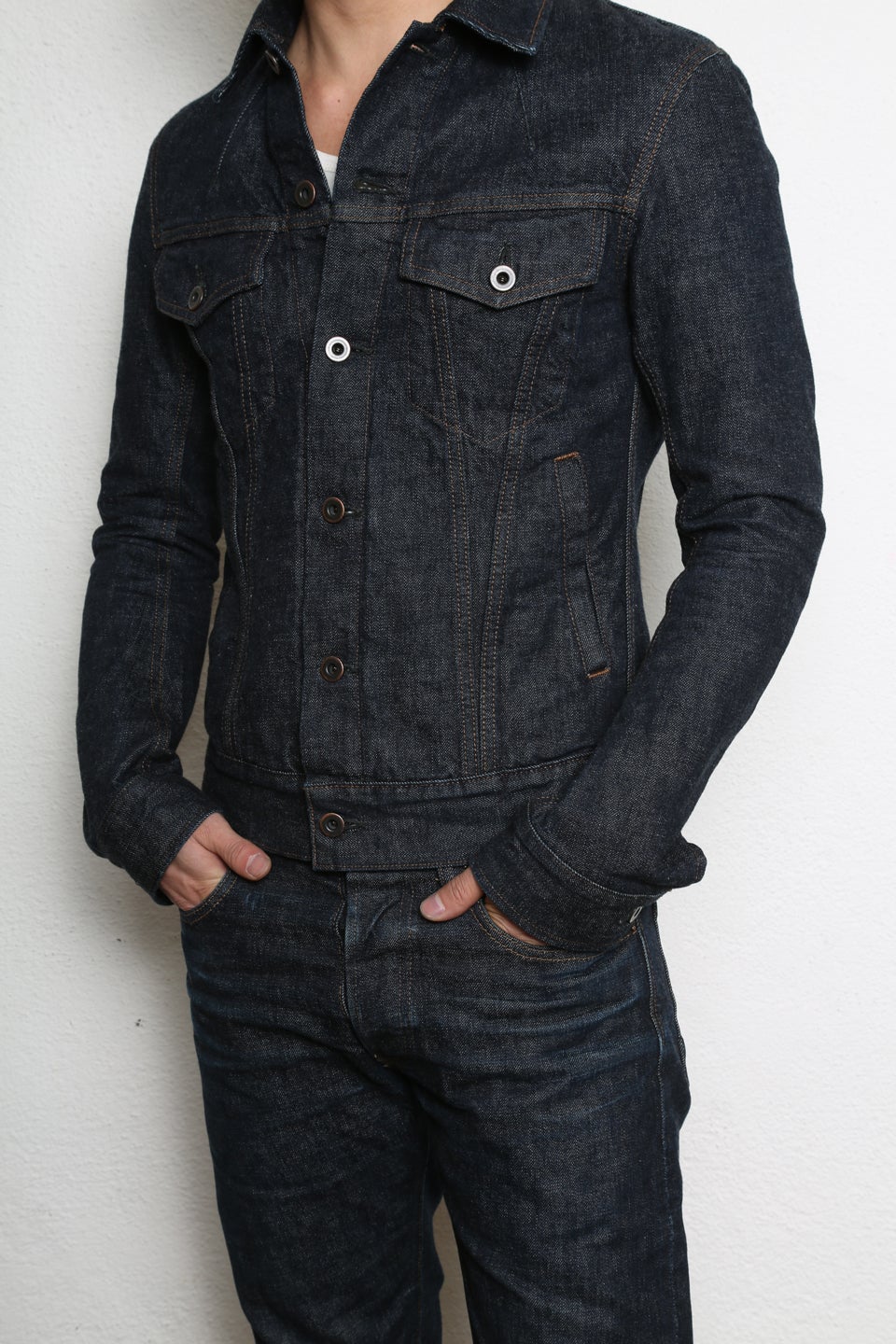 上品なセルビッチデニムとスタイリッシュな細身のシルエットが特徴。