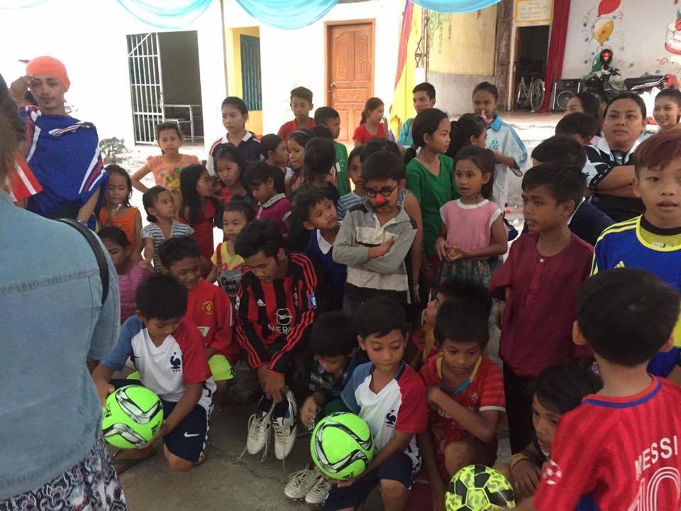日本で不要になった衣服を届け、子供達を現地プロリーグのサッカーの試合に招待しました。