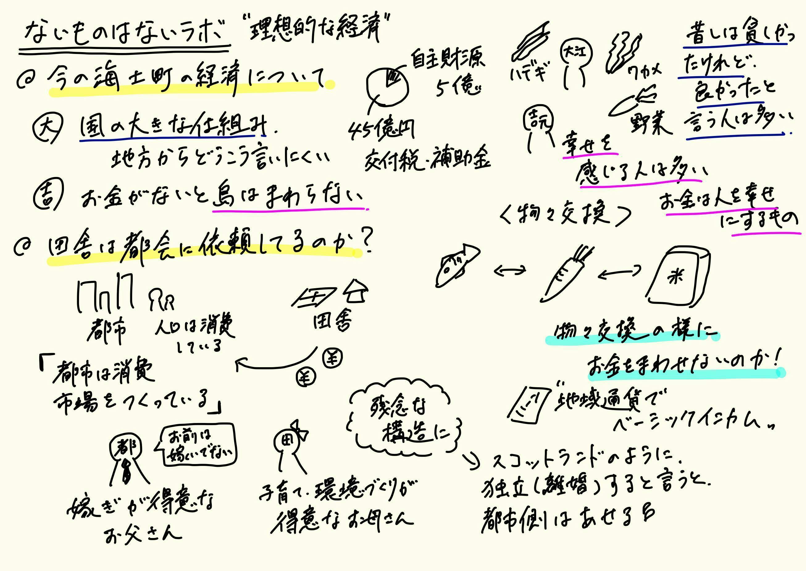 町長・副町長とラボメンバーとで対談をしてみたり、『ないものはない』を測る具体的な指標を議論したり、島の高校生とオンラインでトークセッションをして高校生の応援をしたり、月々積み立てる会費で数ヶ月ごとに『投資会議』を行い、海士町の小さな集落にある神社の修繕に充ててみたり、ラボメンバーの海士町への旅費の補填にしたり。