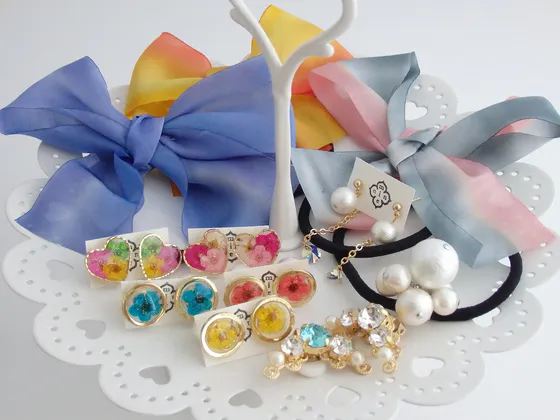 この企画は、ヘアースタイルに合わせて、mieninのヘアアクセサリーやピアスを美容師さんが提案してくださる、というもので、大変ご好評いただいているそうです。(先日追加納品しました)