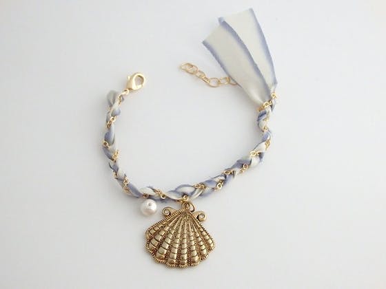 このブレスレットの場合、リボンとチェーンを編込むところまで私が準備して、ブレスレットにお好きなチャームやパーツを選んでつける、という部分を皆様にやっていただこうと思っています。