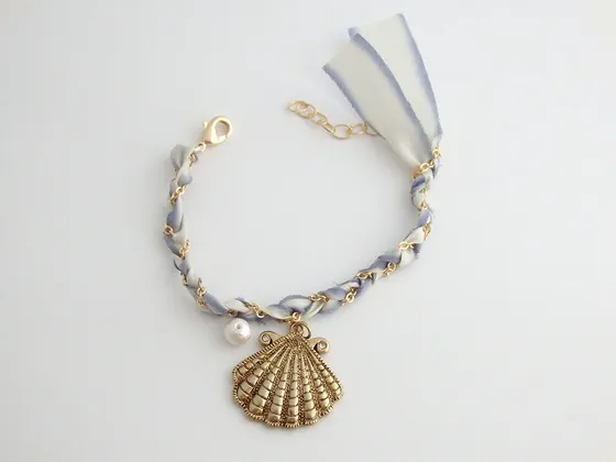 今日はシルクリボンとチェーンを編込んだブレスレットの試作品をご紹介させていただきます。