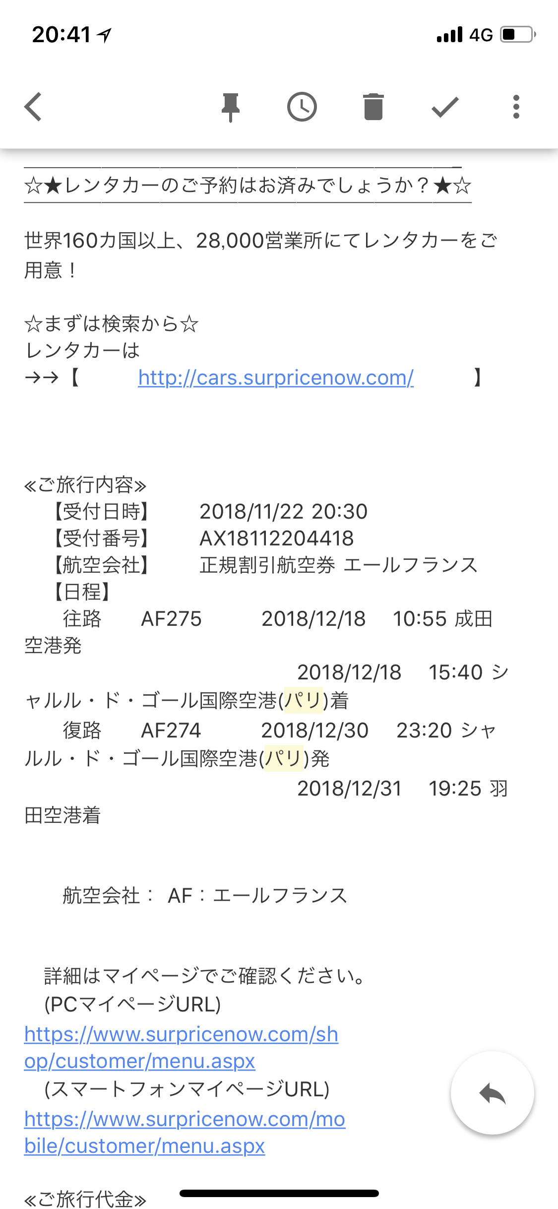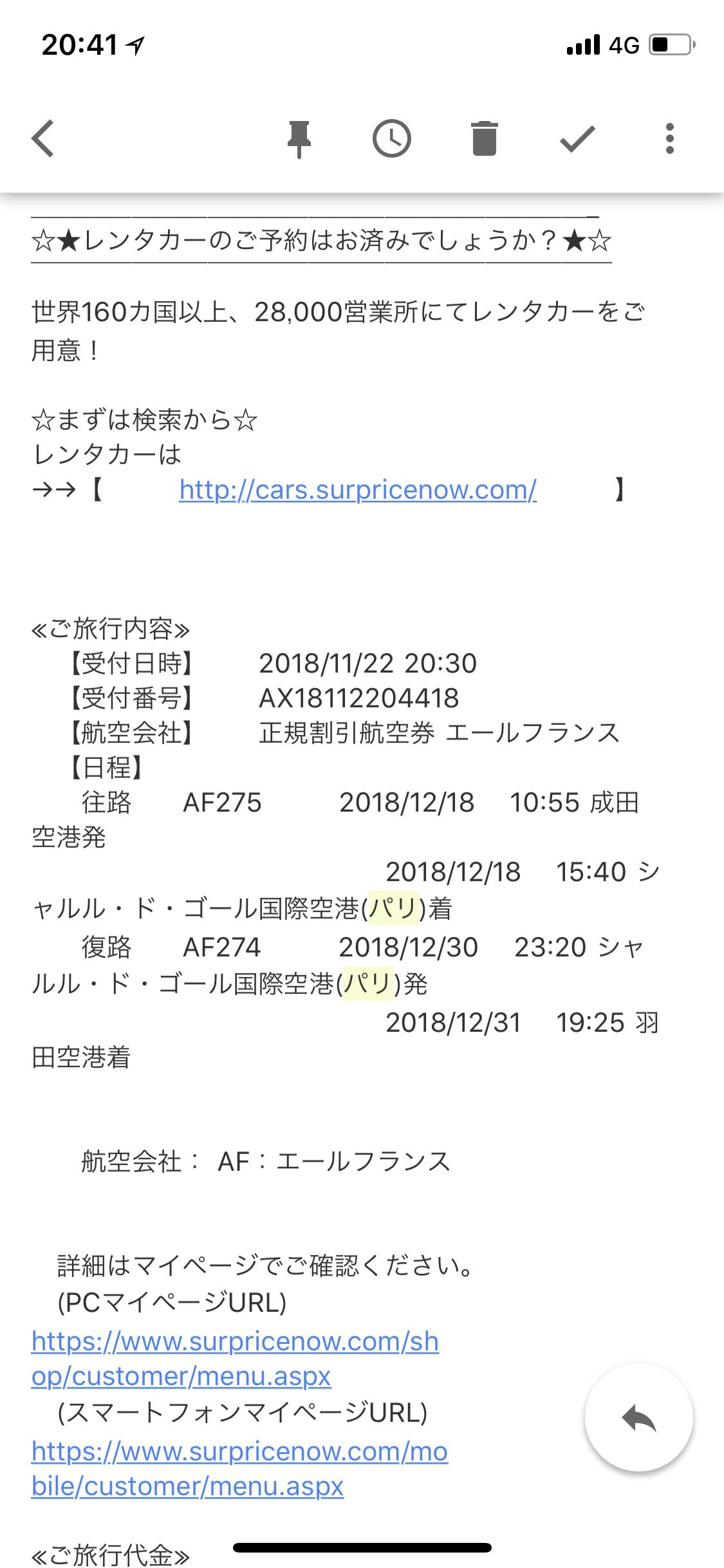 2018/11/30 21:10報告が遅れましたが、先日おかげさまでフランス行きのチケットを購入致しました!(着金までお金をお借りました)狙ってた中国経由のチケットが1ヶ月経った途端に全滅してしまったので、あまり値段が変わらず、条件が良かったチケットを買いました。行き:12/18帰り:12/30で行ってきます!みなさん本当にありがとうございます。。ちなみに日本に帰ってくるのが12/31の19時。年末ギリギリ。笑ちなみにフランス調べたりでわかったことを少しシェア。フランスに会いに行きたい人があるときに参考にしてください。▼学んだこと・チケットは1ヶ月前までに買う・リヨンに行く場合、パリ着時刻は夕方以前が良い(パリの治安が悪いので、荷物持ってウロウロするのが遅くならないほうが良い)・パリの新幹線的なやつの駅近郊の荷物預かりできる場所は18時くらいに閉まることが多い(ので、乗り換える場合はそれより早い新幹線に乗る予定にすべし)・年末日本に帰ってくるチケットは意外と安い(たぶん海外の年末年始旅行需要が少ない)・クリスマスの日のチケットは安い(これは昔学んだ。かなり安かった記憶。クリスマスに予定なければ。)・携帯は現地でSIMだけゲットする予定。100GBで2000円くらいだったような。などルースも学校が終わったみたいで、明日には12月。12/18発なのでもういよいよルースニアエる!!!!僕の中ではこのプロジェクトはまだ始まったばかりで、noteを書き始めたり、いま色々とプロジェクトを立体化しようともがいてます。ルースニアイタイ日記1.ルースニアイタイ、ダイキです。2.遠距離になって思ったこと。キョリってなんだろう。前半。3.遠距離になって思ったこと。キョリってなんだろう。後半。みなさんに僕の想いを届けれるように、尽力しますので、どうぞよろしくお願いします。ダイキ もっと見る