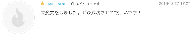 記入のない場合はCAMPFIREのユーザー名を掲載いたします。ご了承ください。