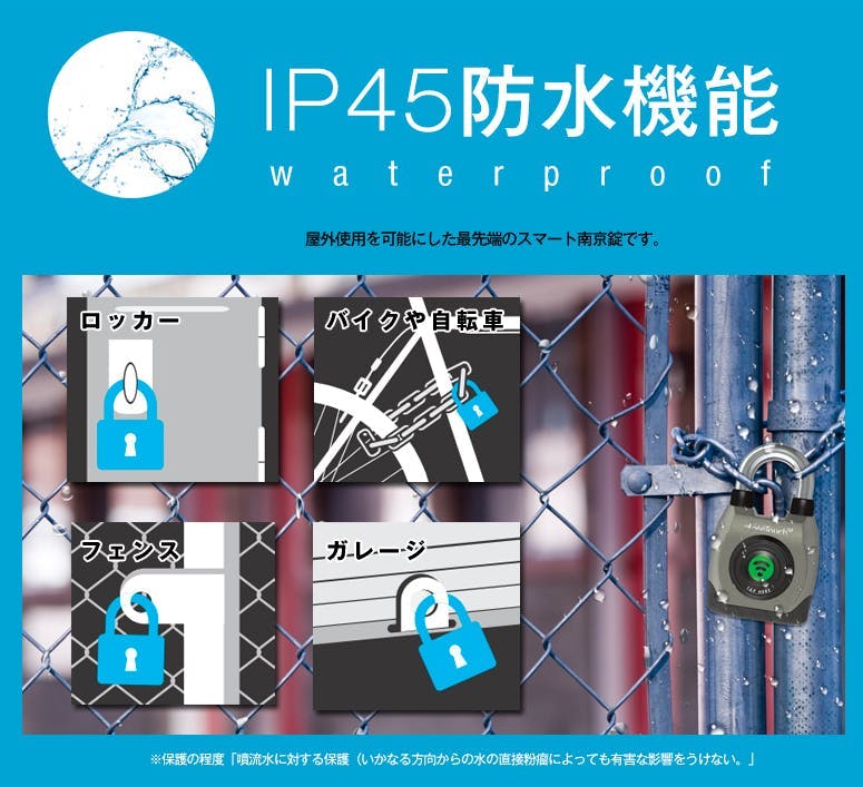 防水スマートロック南京錠のセットアップも、施錠・解錠も手軽で便利です。