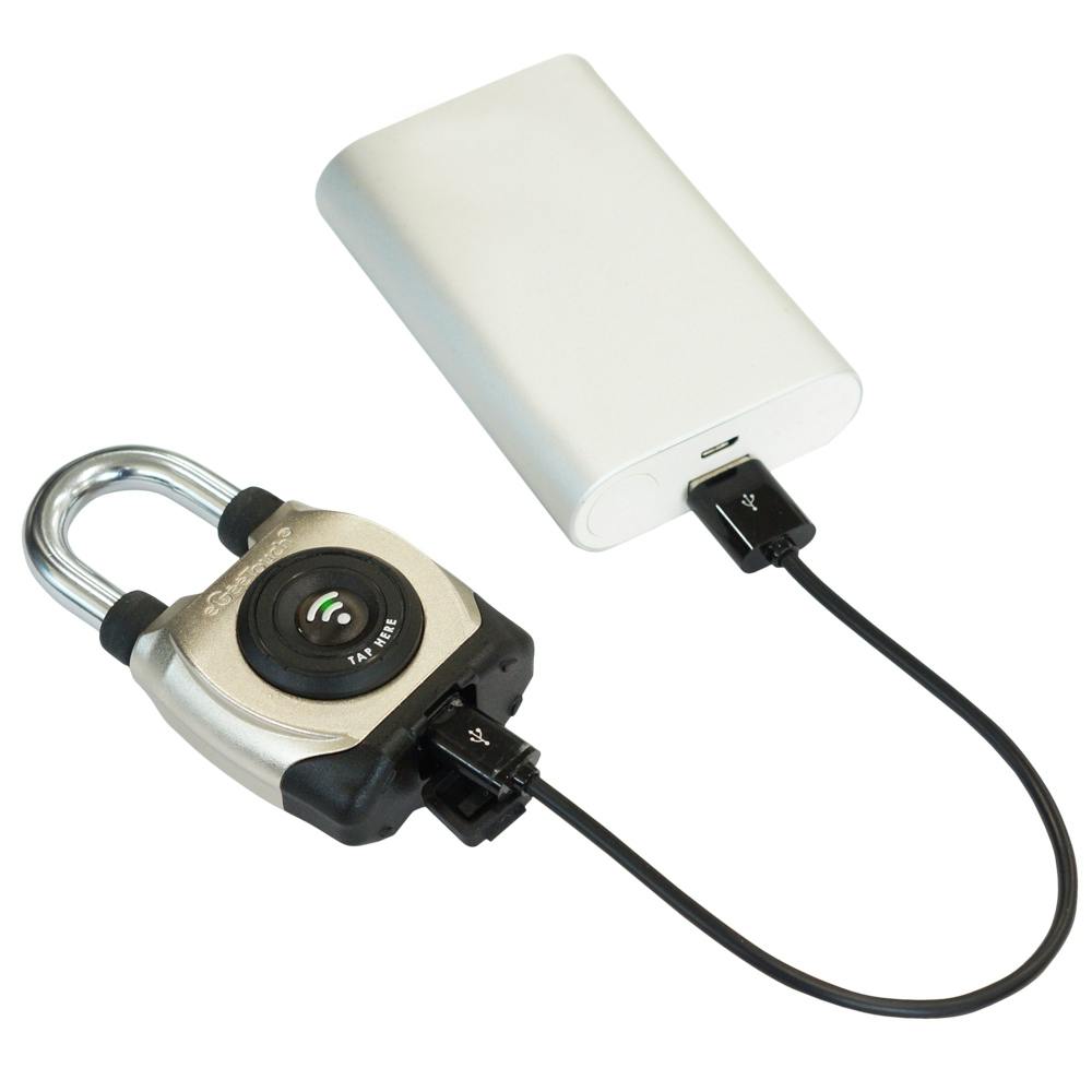 USBにて給電可能です。フルチャージで7,000回以上の施錠/解錠が可能で、今までの電池式(第1世代、第2世代パドロック)よりも遥かに利便性が高くなりました(USB端子付き)。
