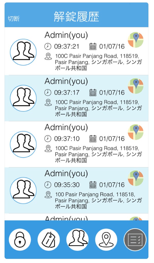 eGeeTouchのアプリで施錠・解錠履歴のデータを保存できます。