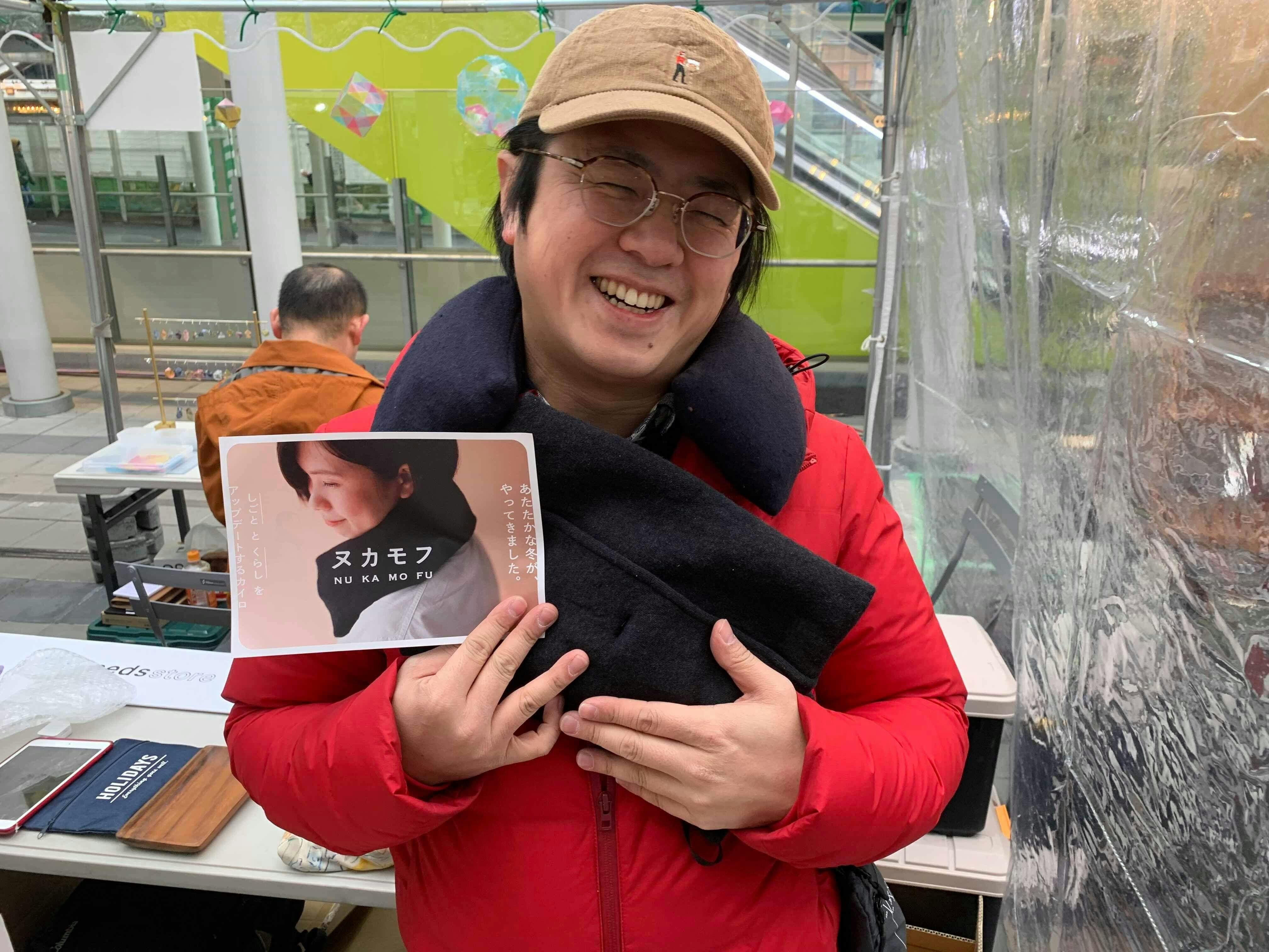 なにこれ?ヌカモフ?と近寄ってきてくださった方に ぽかぽかのサンプルをお渡しすると、どんな性別、年代の方でも「あったか〜い」と顔がほころぶのが印象的でした。
