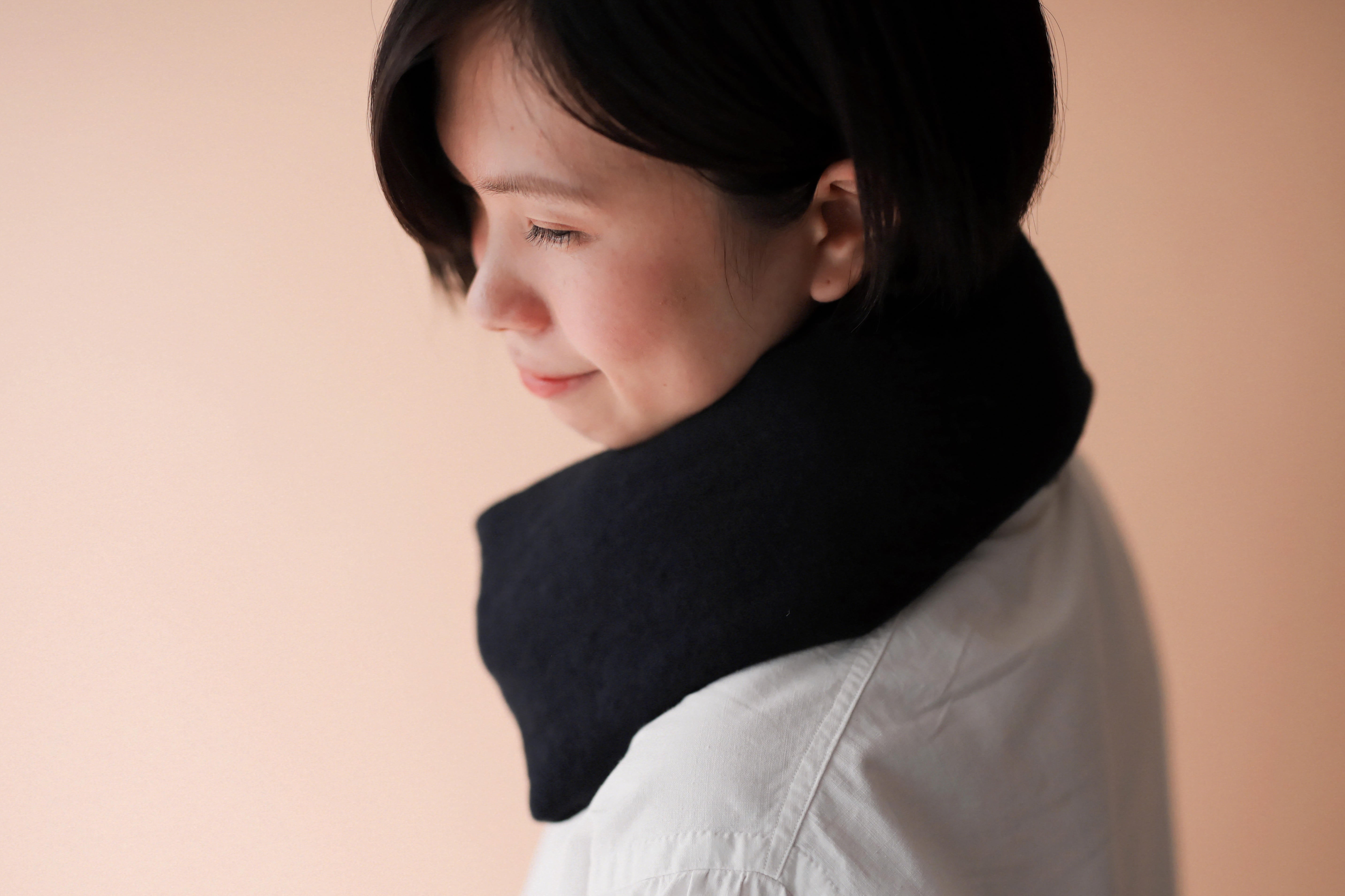 首すじから肩、鎖骨周辺まで暖めて体中ポカポカ。重い気分を軽くしてくれます。