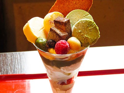 併設の京町家茶房カフェでは、西陣パフェ「ひとえふたえ」が