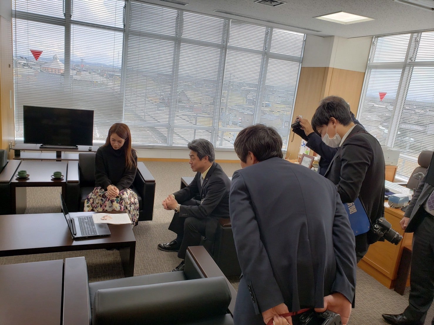 まずは、地元射水市の夏野市長に新年のご挨拶とクラウドファンディング達成のご報告へ。