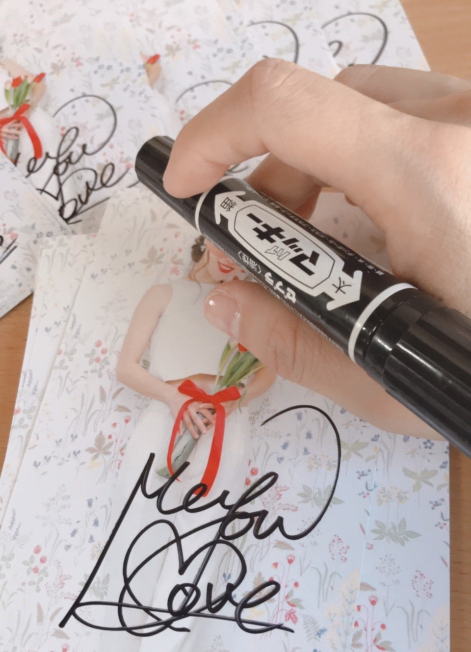 特典ポストカード1枚1枚に手書きでメッセージを書きながら
