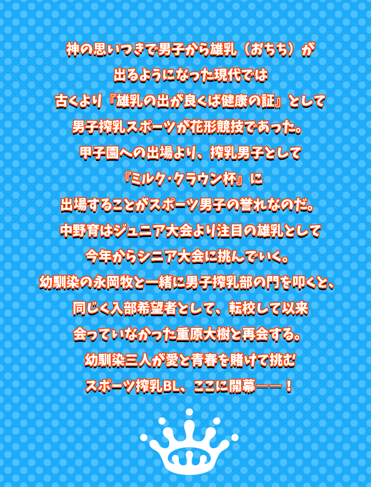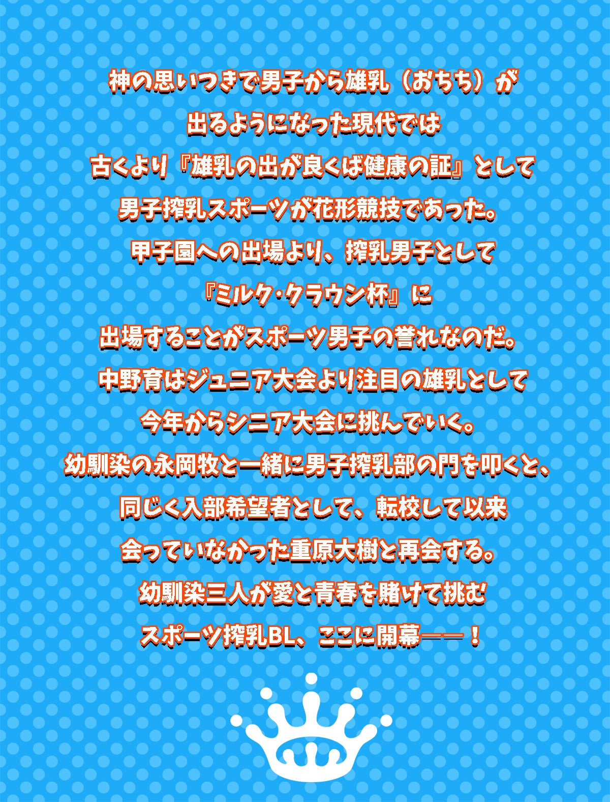 @5000円:おちち一気飲みパック:『少年よ雄乳を搾れ』(体験版)ご送付の際、三種類の書き下ろし前日譚SS冊子を一緒にお届け致します。また該当の体験版のクレジットに任意のお名前を載せることが出来ます。