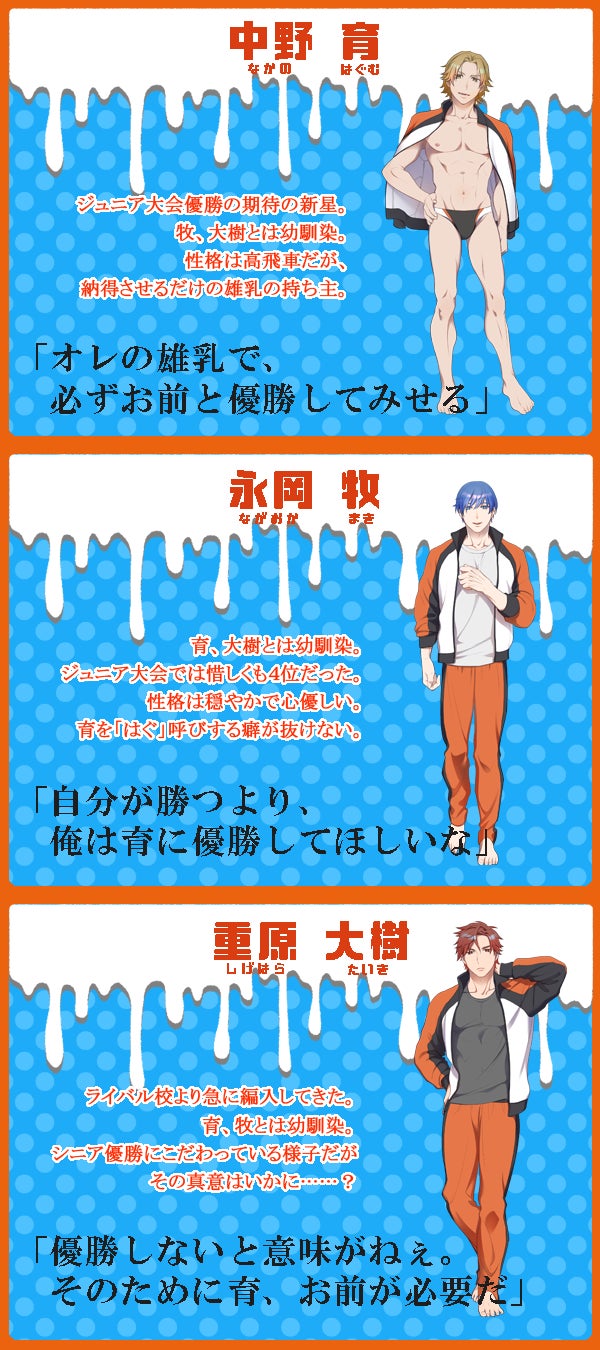 2019/04/04 10:14こんにちは、Niche Positionです。今回の活動報告は内容盛りだくさんでお送りいたします!まずは、新キャラクターのビジュアルを公開です。支援者さまには先行してラフをお見せしていましたが、白大付属の男子搾乳部・部長「設楽結」のビジュアル公式発表はこちらです!可愛らしい容姿から、『白大付属のミルクアイドル』の二つ名で抜群の人気を誇っています。表面的にはチャラついていますが、実は誰より洞察力が鋭い結。部内のライバルでありながらも、育や牧、大樹の世話を焼くこともしばしば……。そんな憎めないキャラクターです。そして、本日のビッグニュース第2弾はこちら!総勢6名のキャラクターボイスの公開です!(敬称略)・主人公「中野育(cv:機動力)」・攻略キャラクター「永岡牧(cv:三重奏)」・攻略キャラクター「重原大樹(cv:馬並ペガサス)」・ライバルキャラクター「設楽結(cv:はちみつれもん)」・ライバルキャラクター「傳田一文字(cv:長竿蜜流)」・ライバルキャラクター「柳秀一(cv:夜街湊)」新進気鋭の声優様に、制作陣も非常にワクワクしております!詳細は公式サイトにてご確認ください!また4月28日開催の「SUPER COMIC CITY-起-」のスペースナンバーも確定いたしました!私たち「Niche Position」は【青海Aホール、D06b】にスペースを頂いております。ご参加の方はぜひスペースにお立ち寄りいただけると幸いです。今回の活動報告は以上となります。そろそろ体験版制作も佳境に入り非常に慌ただしくなってきておりますが、体験版を皆様にお届けするまで、私達の活動を逐一報告してまいりますので、どうぞよろしくお願い致します。2019年4月4日 Niche Position拝 もっと見るシナリオ&前日譚SSを進めています!