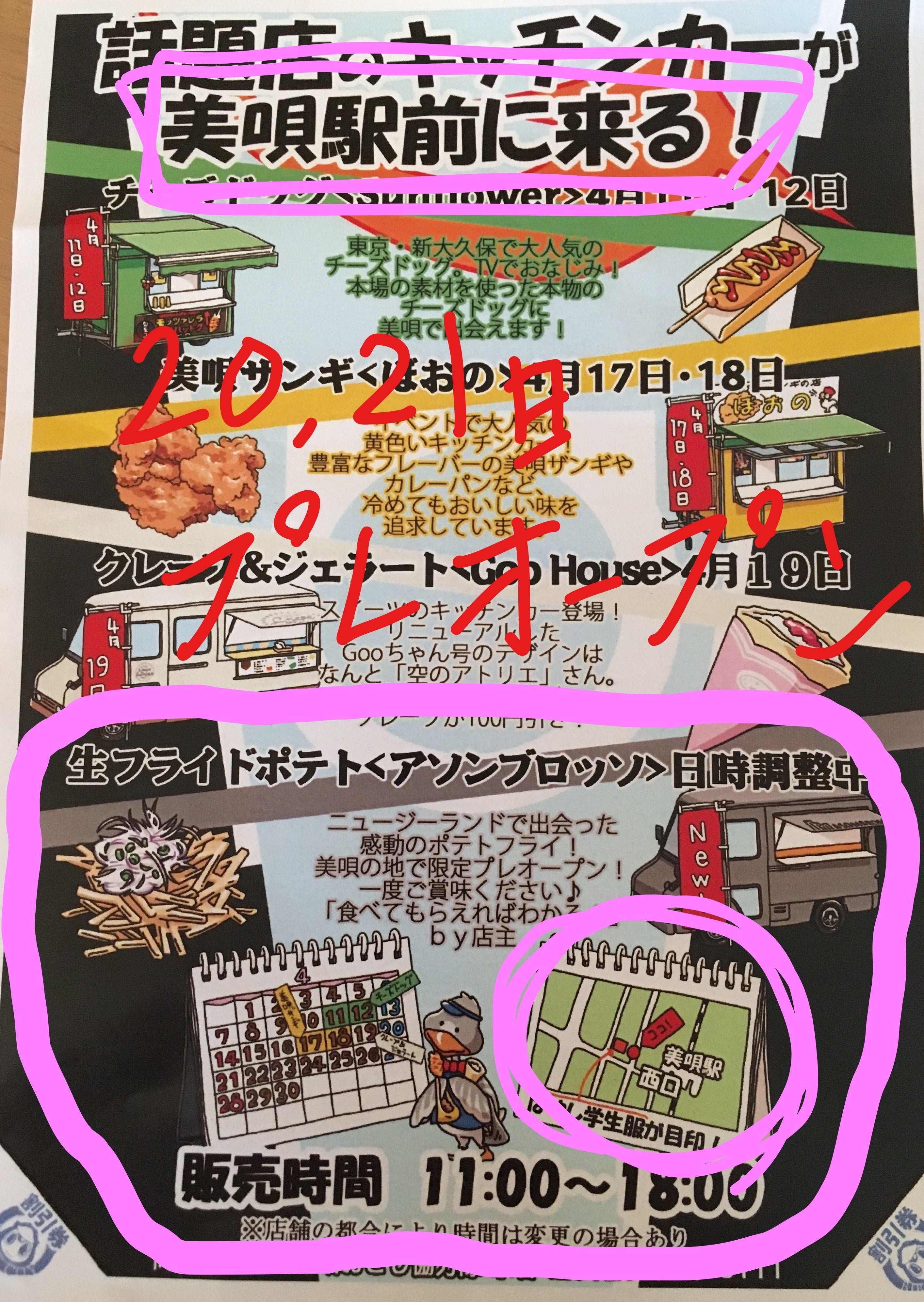 • 本日、素晴らしい天気の中、無事に納車・営業許可を取得取得しました。これが穀雨となることを祈るばかりです。皆さまのご支援のおかげでここまで来ました。本当に感謝ですm(__)mつきまして、20,21日の二日間でプレオープンいたします。場所はJR美唄駅西口前です。正式オープンはGW(4/27~5/6)からとなります。輪厚SA下り線(千歳→札幌)で営業しています。高速道路に乗らなくても施設の裏に駐車場がありますので、安心してください。みなさまにお会いできることを楽しみにしております。アソンブロッソ・ケータリングサービス齋藤誠輔 もっと見る
