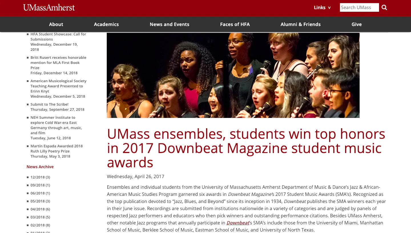 何がジャズかなのかすら分からず、英語もたどたどしいないまま、週3回もある練習に参加し、毎日練習室に通い、勉強漬けのはずが、音楽漬けの1年間を過ごしました。そしてこのメンバーで、アメリカのジャズ専門音楽誌『DownBeat』においてUndergraduate College Winnerに選出されました!