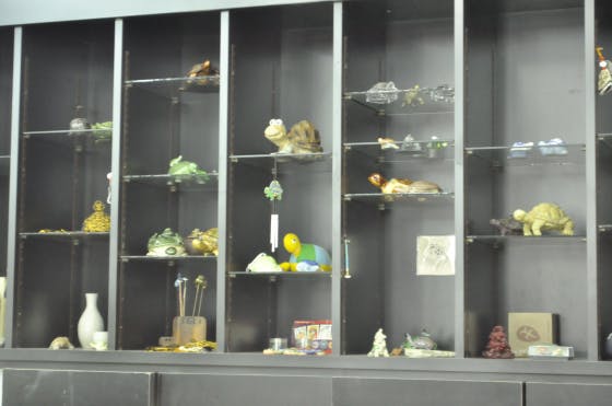 「かめ七」さんには、かめの置きものや人形が沢山ありました。