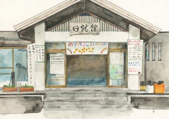 「このボランティアセンターを描いてほしい」といってくださった方の思いと、私が感じたことをこめて、描いたのがこの思い絵です。