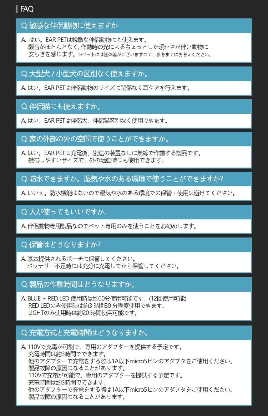EAR PETは爆発的に増加するペット保有の家具に比べて、ペットの健康のための製品がまだ不足な事実が常に気掛かりました。これにより多くの伴侶動物が常に健康でいてほしいという気持ちでEAR PETを製作する運びになりました。ペットの健康なライフスタイルを成し遂げるための第一歩として、CAMPFIREクラウドファンディングサポーターの方々と共に進んでいきたいです。ペットの"生活の質の向上"という関心事で悩み始め、長い旅の末に"EAR PET"がその最初のプロジェクト活動をスタートします。応援の方どうぞよろしくお願いします。