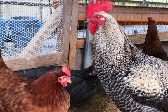 それでもストレスで羽をむしり合ったり、いじめが起こったりします。雄鶏・雌鶏を一緒に飼うことでストレスが軽減すると聞き、先日、雄鶏たちに入舎してもらいました。