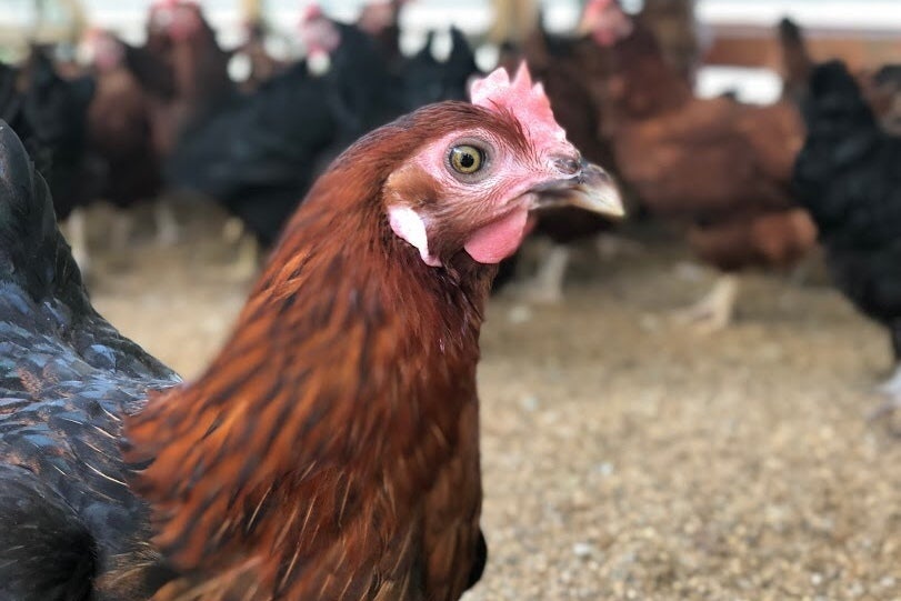 上記で紹介しましたが、当農場では鶏達がさらに快適に過ごせるように、1平方メートルあたり6羽に抑え、自由に走り回り十分な運動量が取れるようにしています。