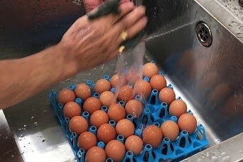 また鶏舎の掃除や採卵作業に多くの手間がかかり、洗卵作業も1つ1つ磨き上げる用に手作業で洗っています。