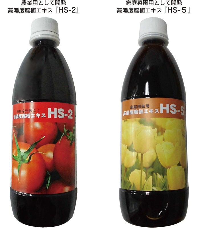 家庭菜園用に開発した、高濃度腐植エキス「HS-5(500mL)」5,800円(税抜)が