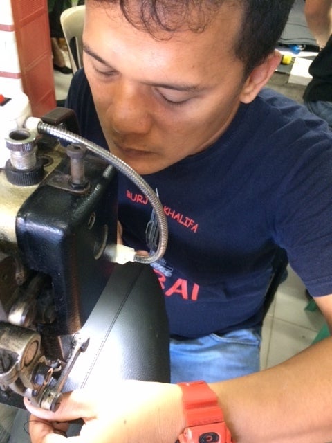 フィリピンでは革のなめし工場で働き始め、それと共に靴・サンダルの生産をしています。現在フィリピンに来て10年目で10月から鞄の工場をスタートしました。