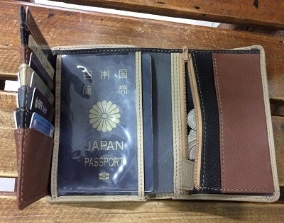 現在制作中の本革型押し財布4点か本革型押しキーケースの中から選んでいただくか、その中で一型のみ日本から取り寄せた特注の革を使用した長財布を作りました。そちらからもお選びいただけます。