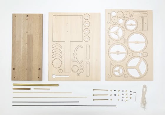 木の時計を一から製作すると、最初にぶつかる壁が歯車の精度です。この問題は、歯車をNC加工メーカーに高精度に切り出してもらうことでクリアしているのがキットの利点です。