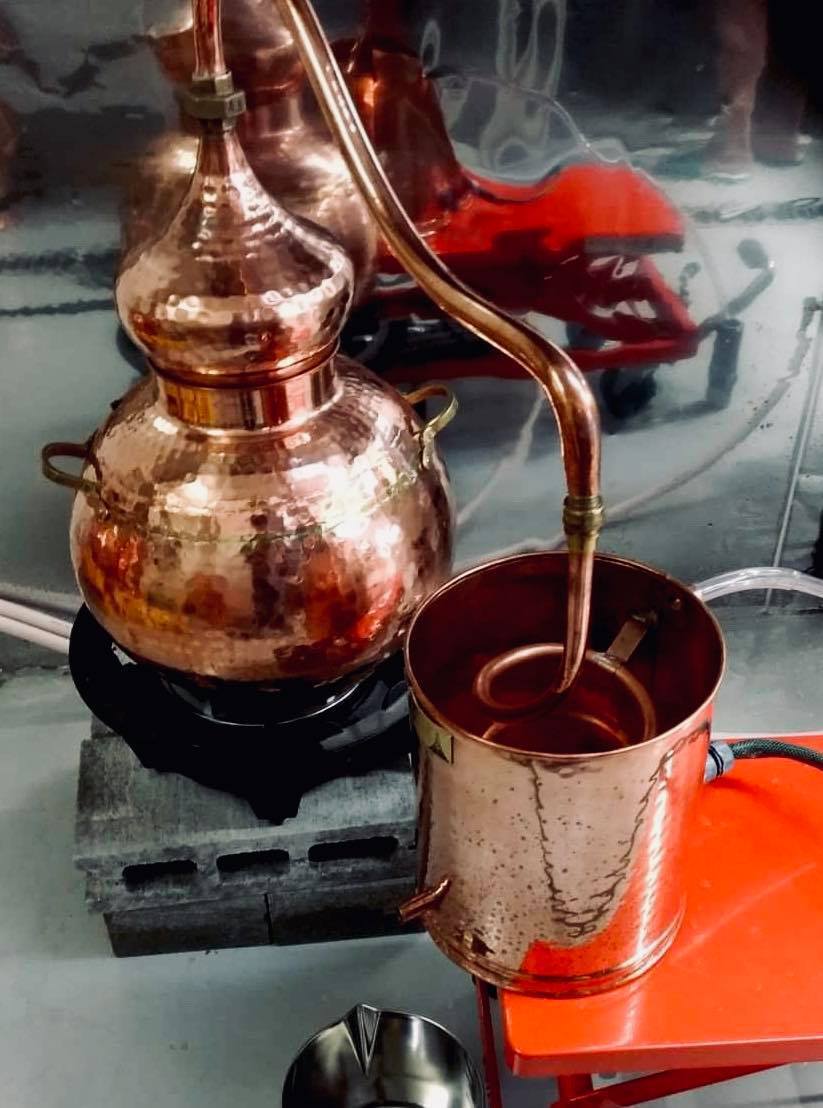 ▼キュラソーは小型の銅製ポットスティルにて湯浴式でゆっくりと蒸留。