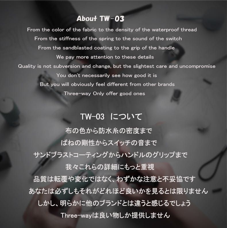 Three-wayは基本理念に基づいて高品質な製品に誇りをもって全世界に提案・提供することで相互の社会に貢献してまいります。2018年販売量は170万本突破したZDZシリーズの新作ZDZTW-03(全世界10000本限定発行)をご紹介します。