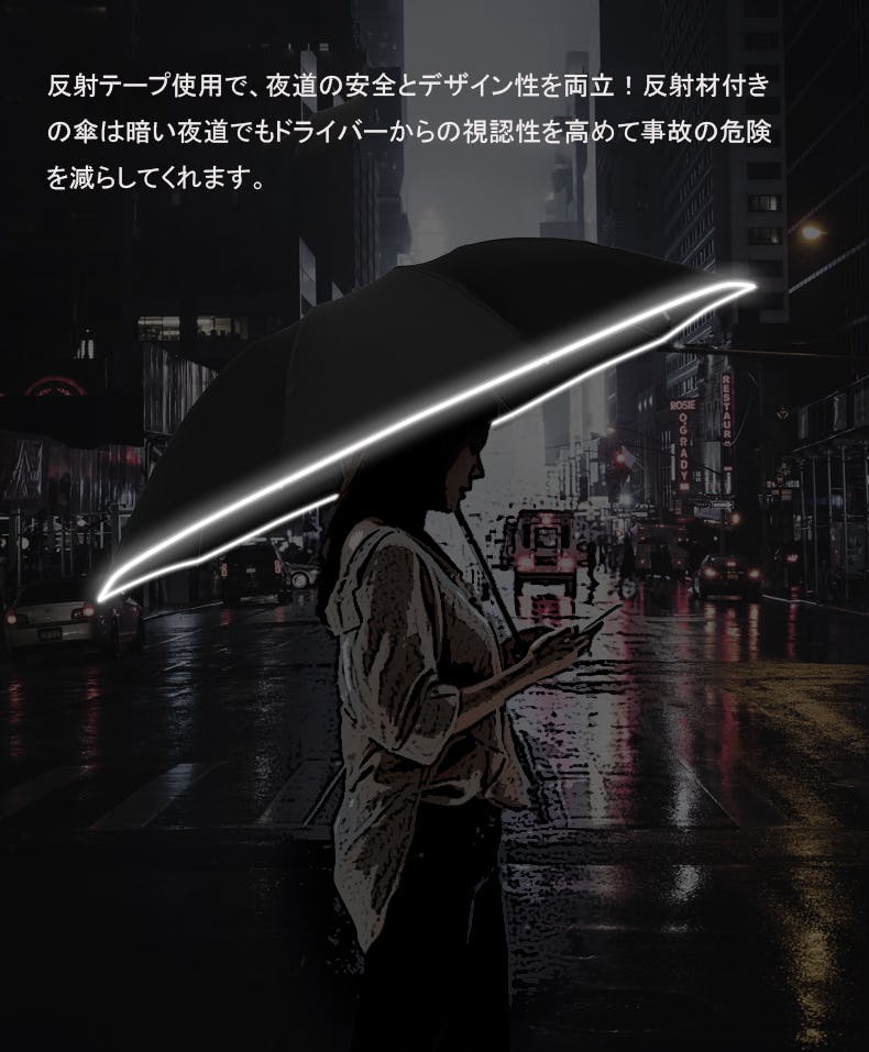 全世界10000本限定発行!1.自動式の逆折り畳み傘は、濡れた傘のわずらわしさを解消されます。2.強い雨風に耐える、頑丈なアルミ合金の支柱を使用。3.超撥水性、一振りで雨粒をオフする。4.反射テープ使用で、夜道の安全とデザイン性を両立。5.LED照明付き、暗い雨の夜に道を照らします。