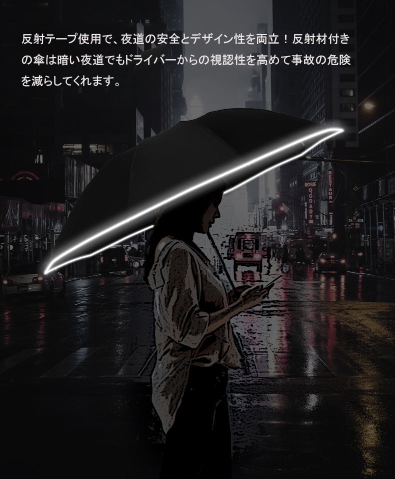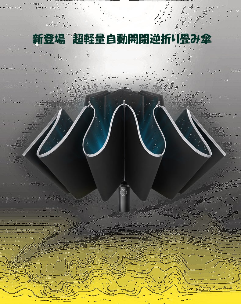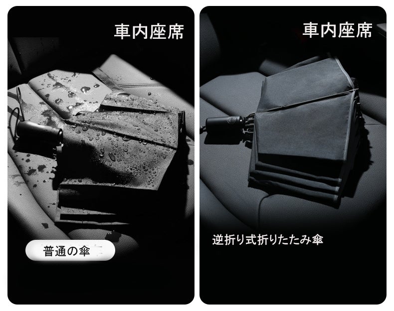 ❶.1秒自動開閉の逆折り畳み傘は、濡れた傘のわずらわしさを解消されます。