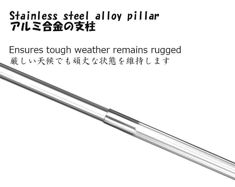 ❷2.強い雨風に耐える、頑丈なアルミ合金の支柱を使用。